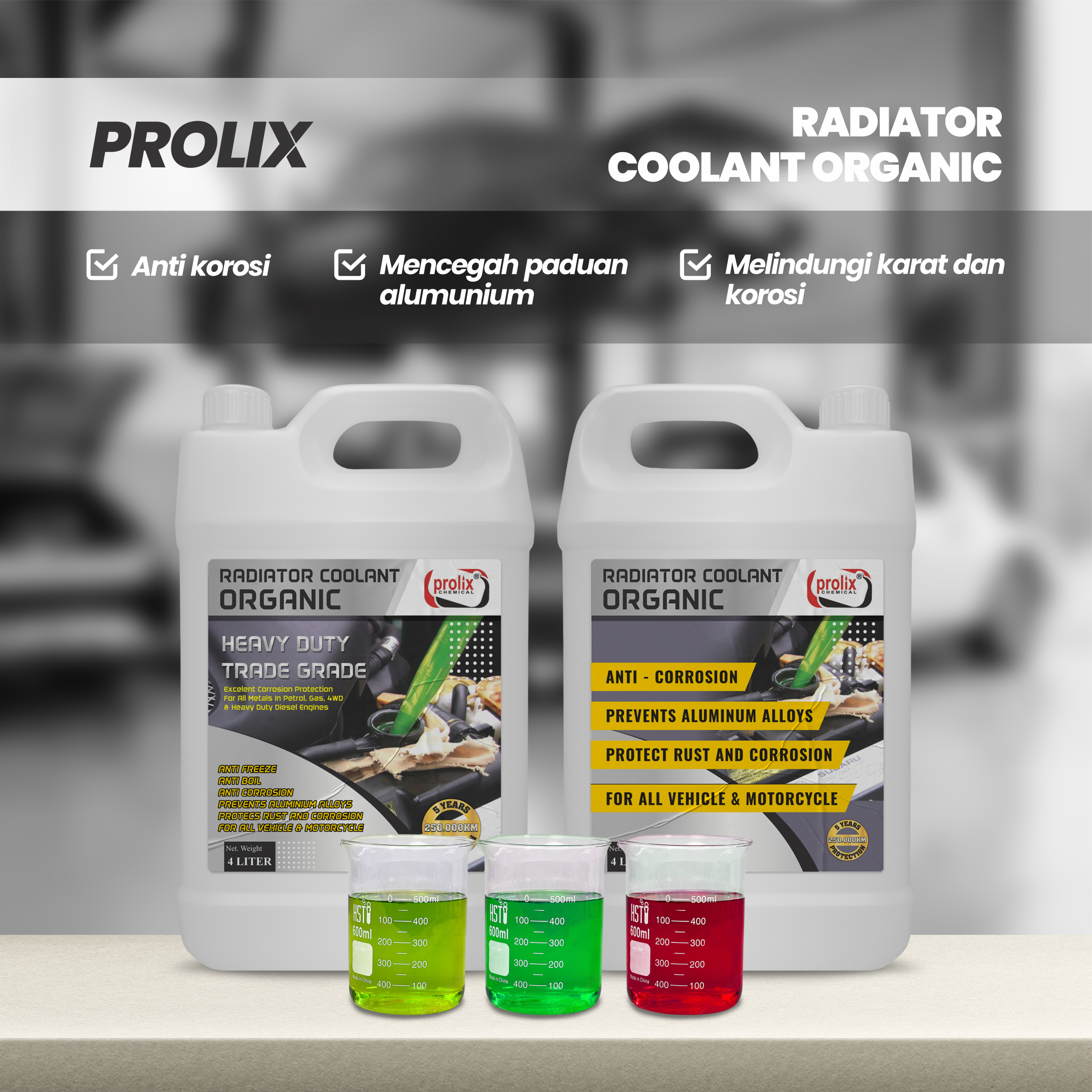 Radiator coolant diformulasi khusus untuk menyerap panas dan mencegah korosi atau karat pada material logam.
